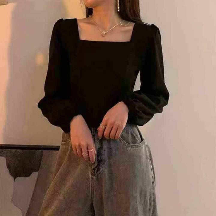 150件左右2025新款韩版方领泡泡袖法式靓妹T恤长袖上衣!均码!独立包装!全...