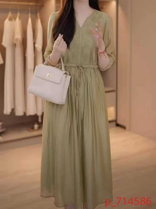 ☕️杭州高品质缎面连衣裙夏季新款中袖气质高端v领短袖中长连衣裙360条全清14.8元分货15.8元,码数M L 宽松版,单款5色,独立包装 Hangzhou High Quality Satin Dress Summer New Medium Sleeve Elegant High-end V-neck Short Sleeve Midi Dress فساتين ساتان عالية الجودة من هانغتشو صيف جديد كم متوسط أنيقة عالية الجودة فستان منتصف الطول بخط رقبة على شكل حرف V_@_@