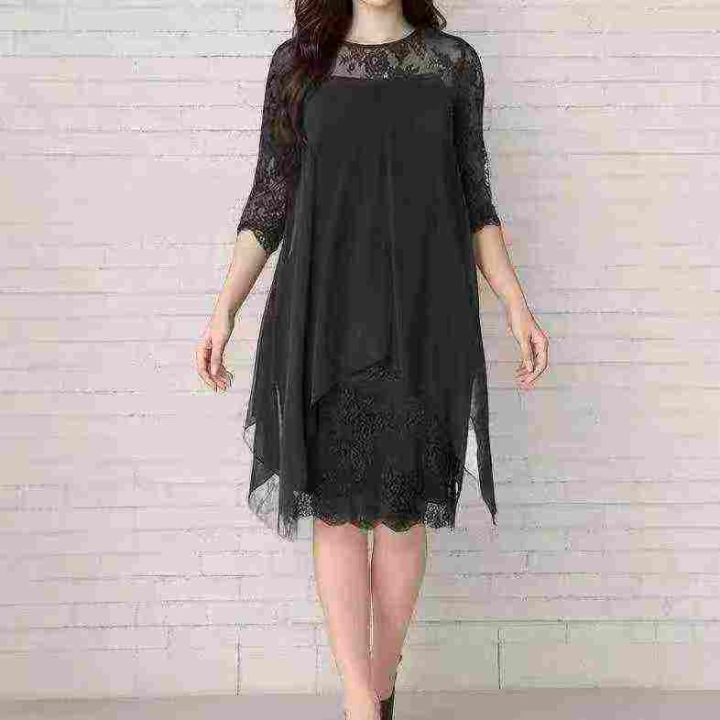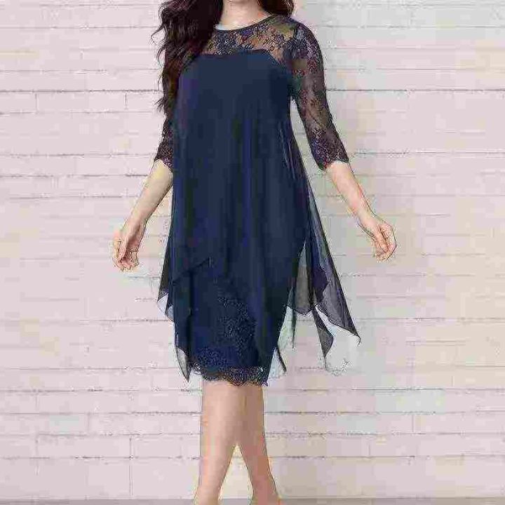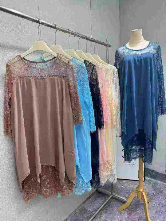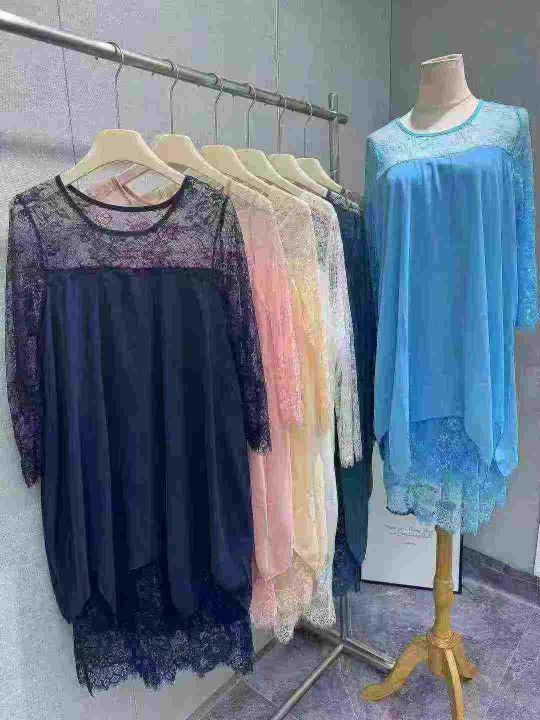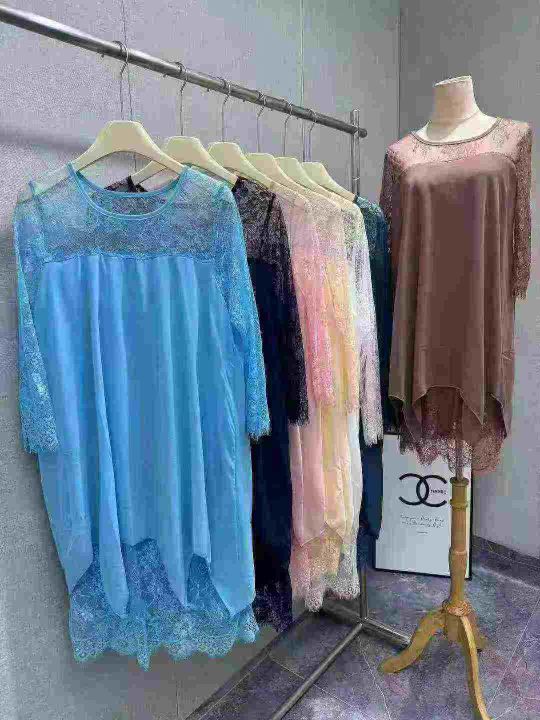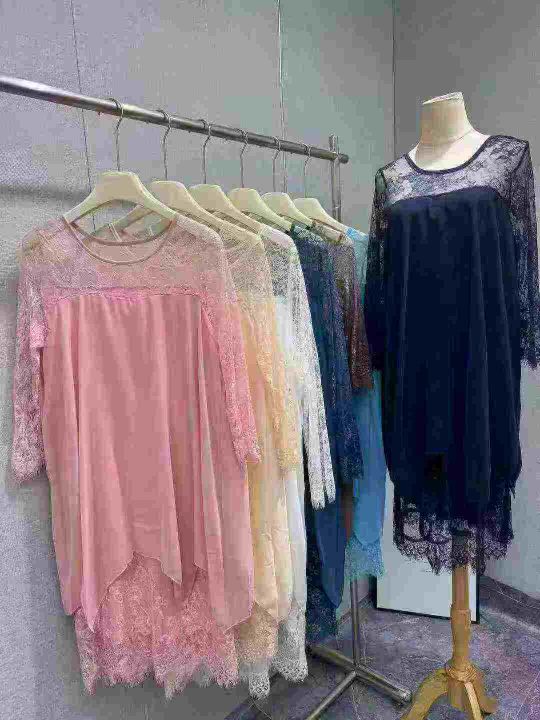 清2500条,春夏新欧美优雅风蕾丝拼接七分袖中长款齐膝雪纺,码数s-5xl,可清可分。