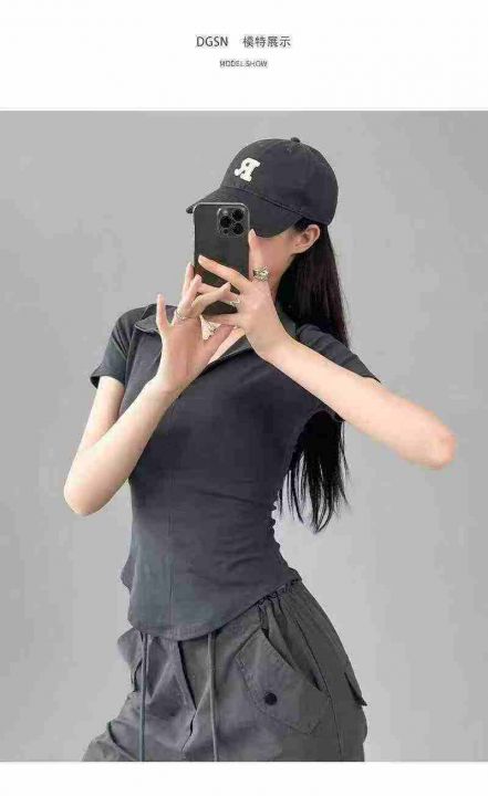 [發]纯欲拉链翻领辣妹短袖体恤170件独立包装有吊牌 均码 高弹力 显瘦收...