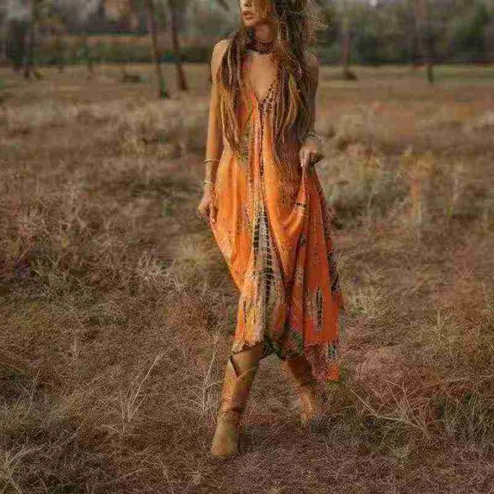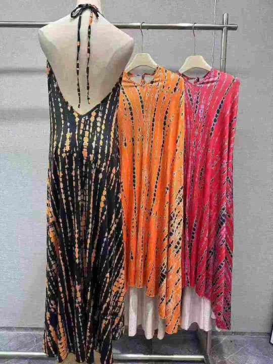 13清,2000条,夏季性感无袖挂脖系带露背印花连衣裙。...
