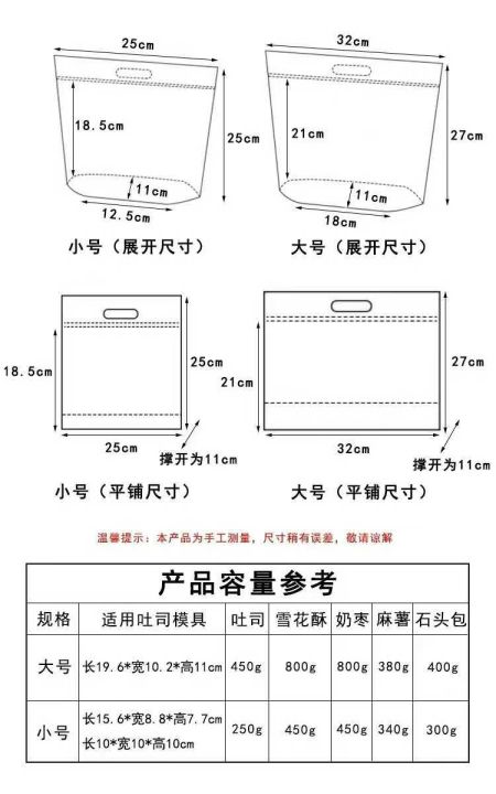 切片吐司包装袋,大小号两款,到货件8款共160件,大号...