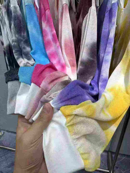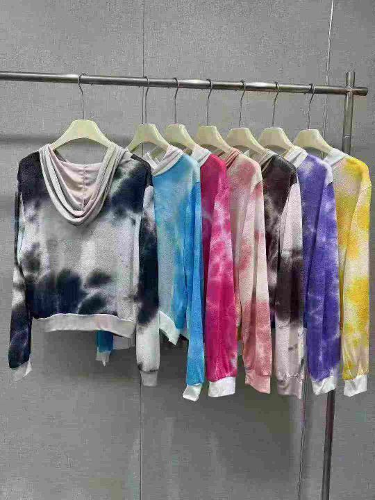 清2000件,欧货爆款时尚2025新版小众设计感渲染扎染修身显白气质洋气连帽长袖外套,码数l-xl。