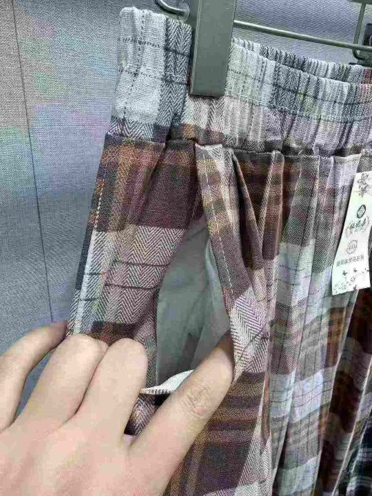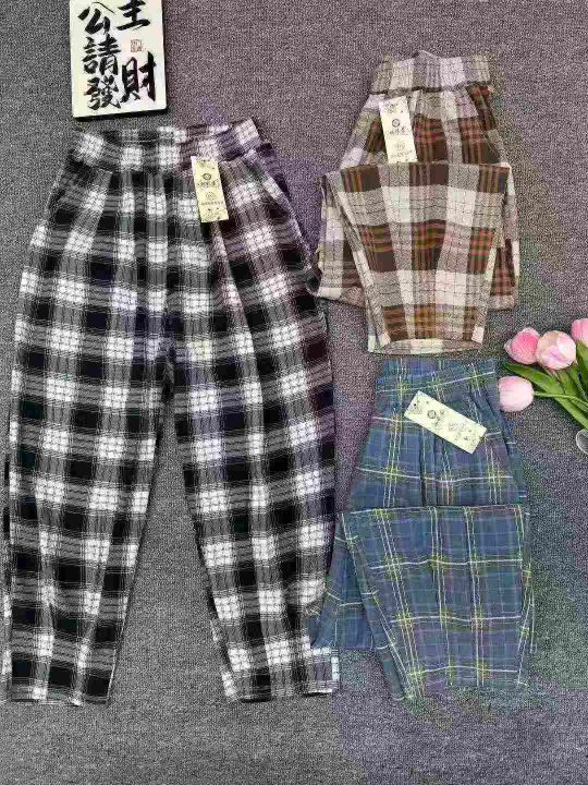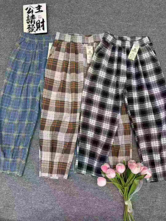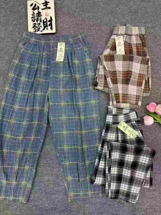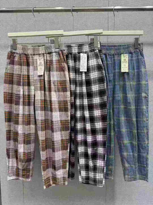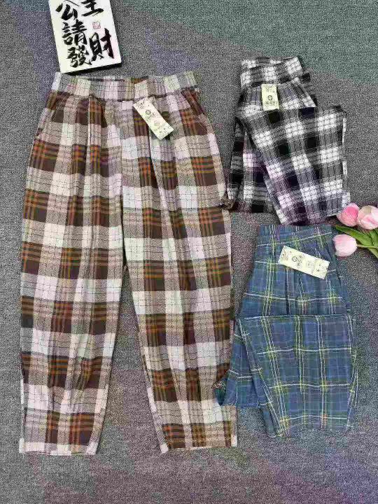 清500条,夏季薄款格子哈伦裤九分绵绸休闲萝卜裤,双边带口袋,码数l-4xl。