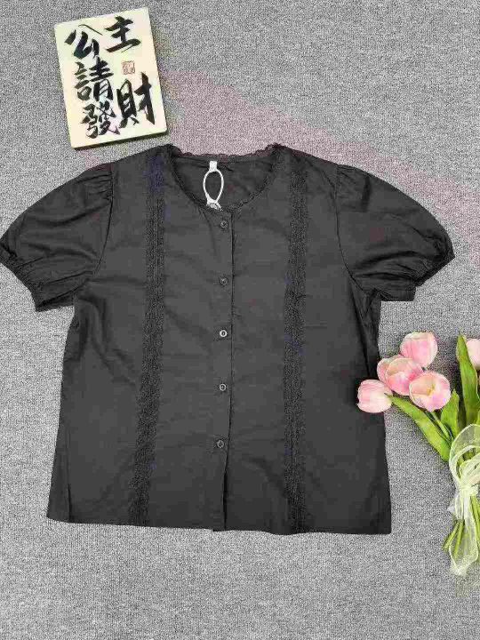 清600件,大码短袖T恤衫女夏季,花边圆领泡泡袖设计感小衫开衫,洋气百搭,码数s-2xl。