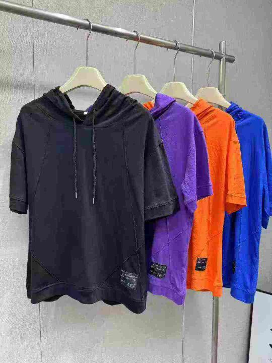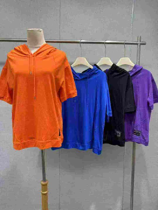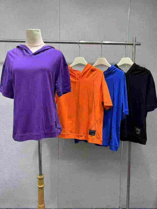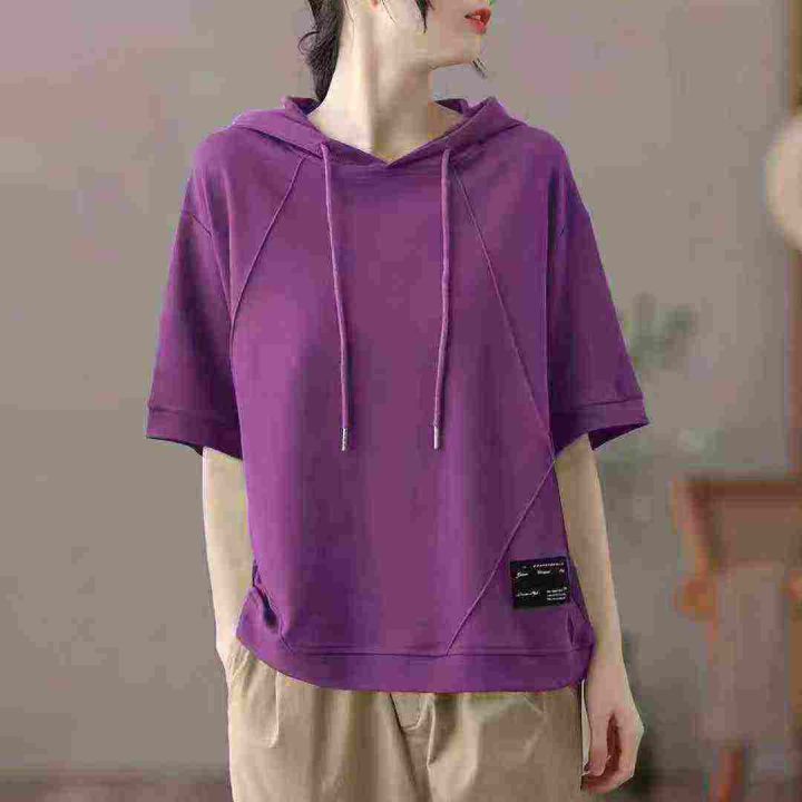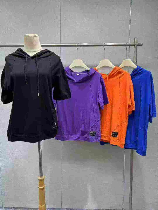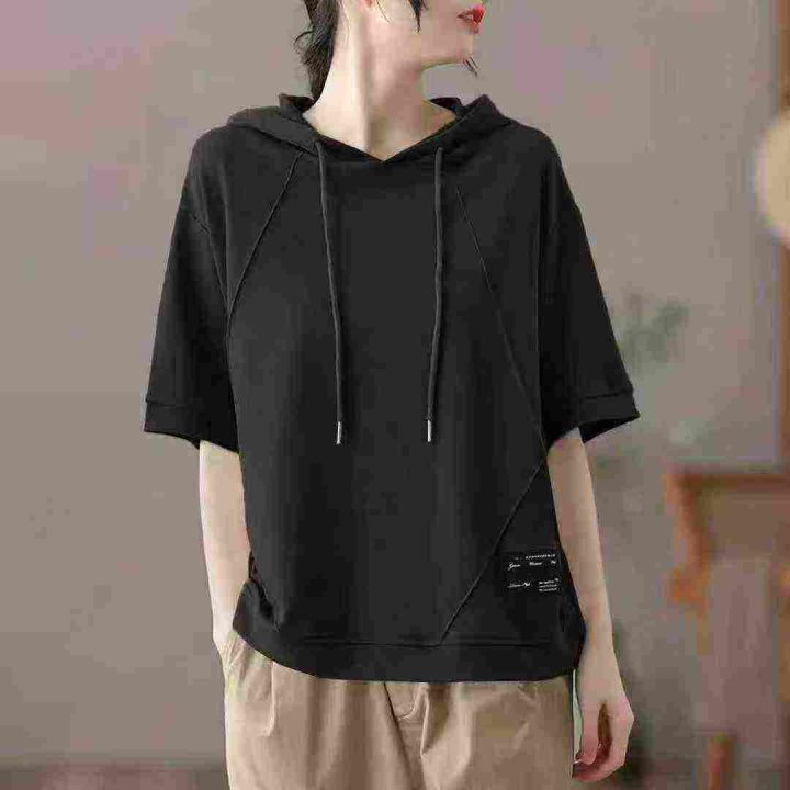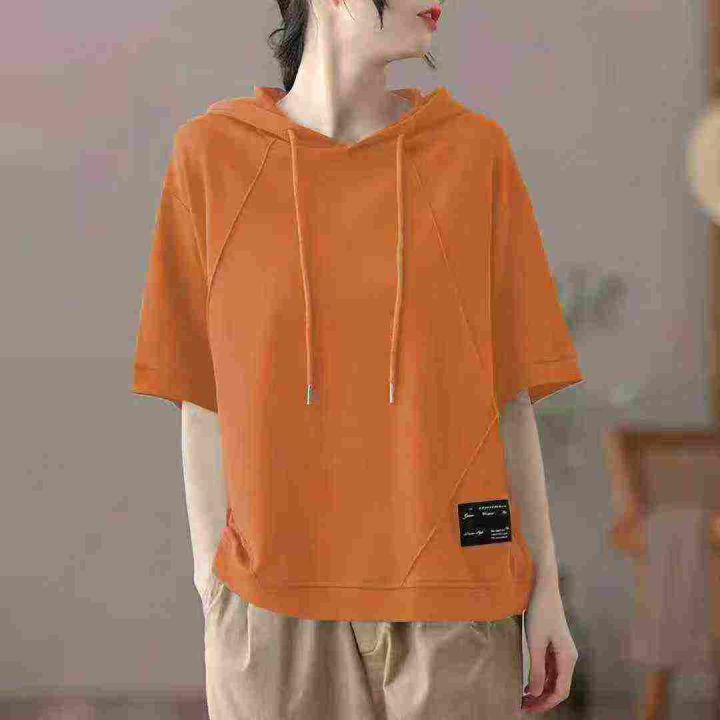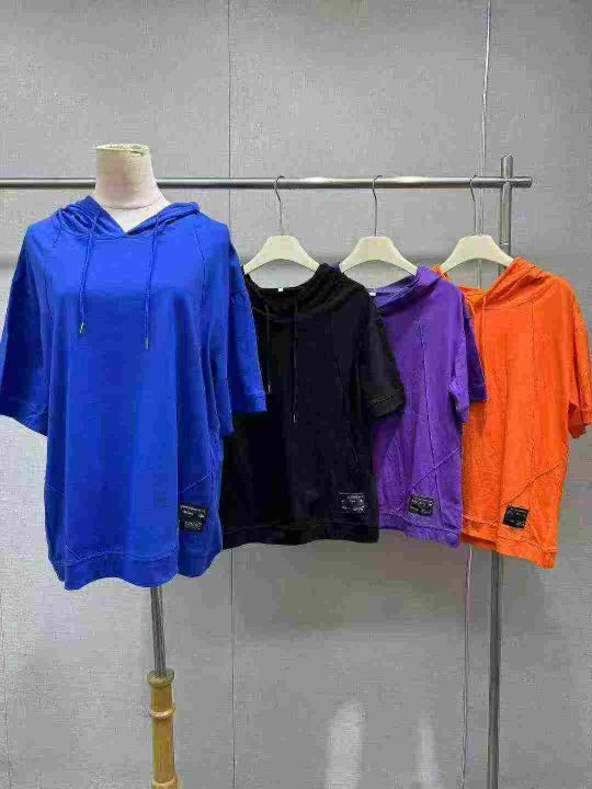 清1200件,韩版新款夏季纯棉连帽短袖t恤女士宽松遮肚显瘦洋气减龄纯色上衣,拼接设计感贴标宽松洋气大码半袖女t恤上衣,码数1 2 3 4 5 。