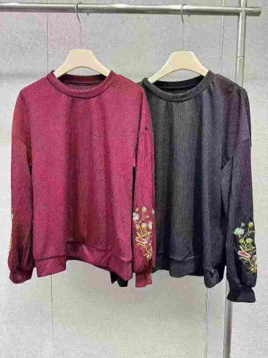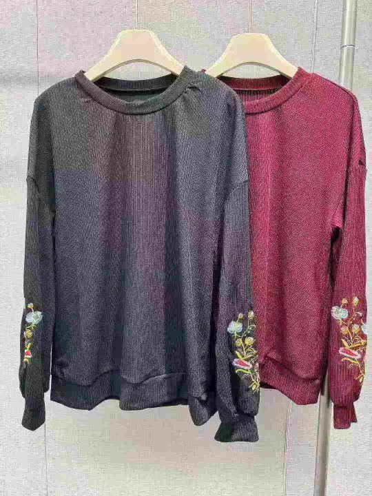清500件,2025春季新款韩版宽松慵懒风刺绣圆领卫衣休闲针织减龄洋气上衣,码数s-2xl。