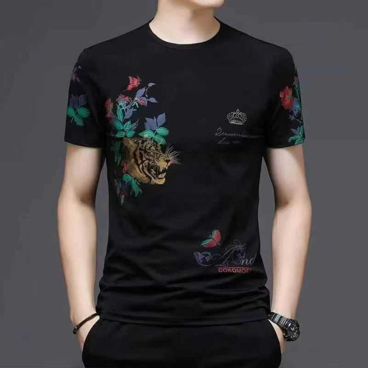 夏季男士短袖T恤印花圆领冰丝上衣中潮流体恤,几个花...