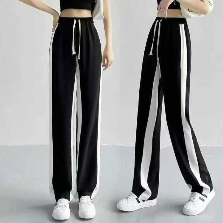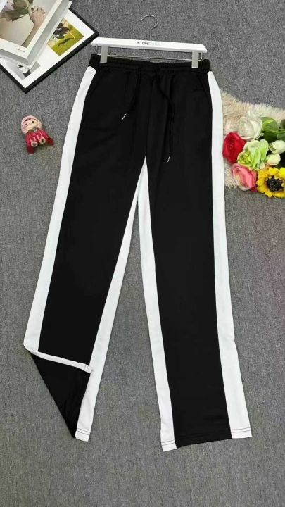 工厂回收490条潮牌黑白撞色男女同款显瘦休闲卫裤,码数s-2xl,宽松版型,上身效果超好,质量质感都超级好,都有包装。分货加1