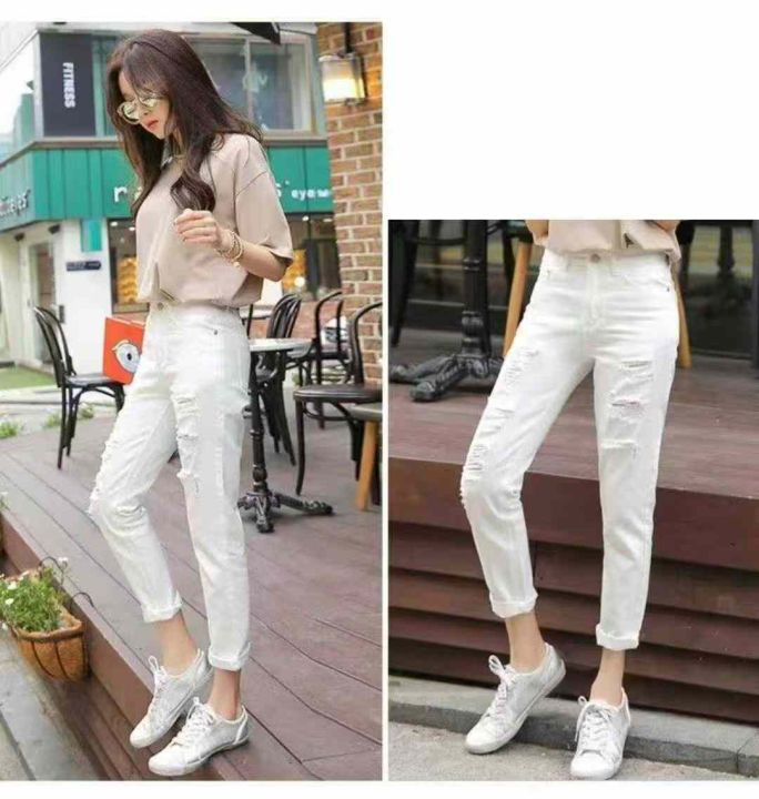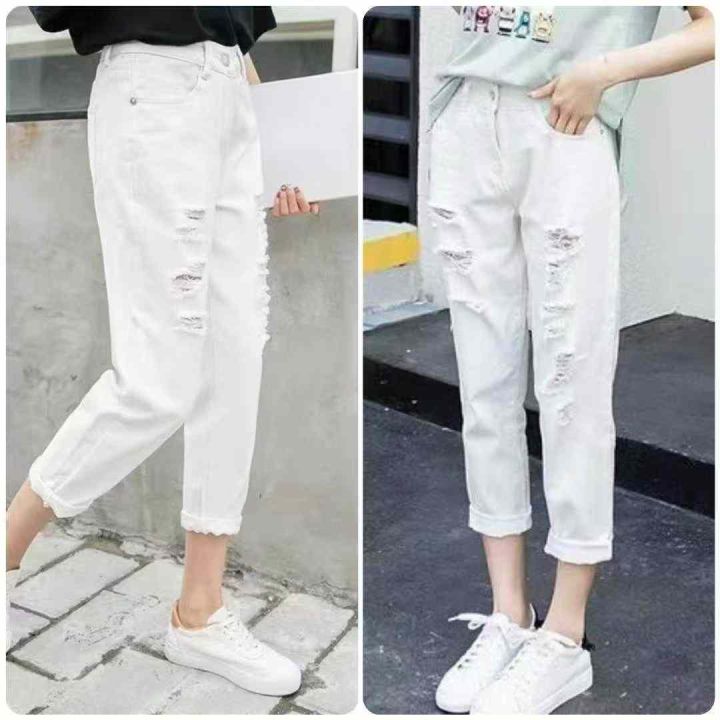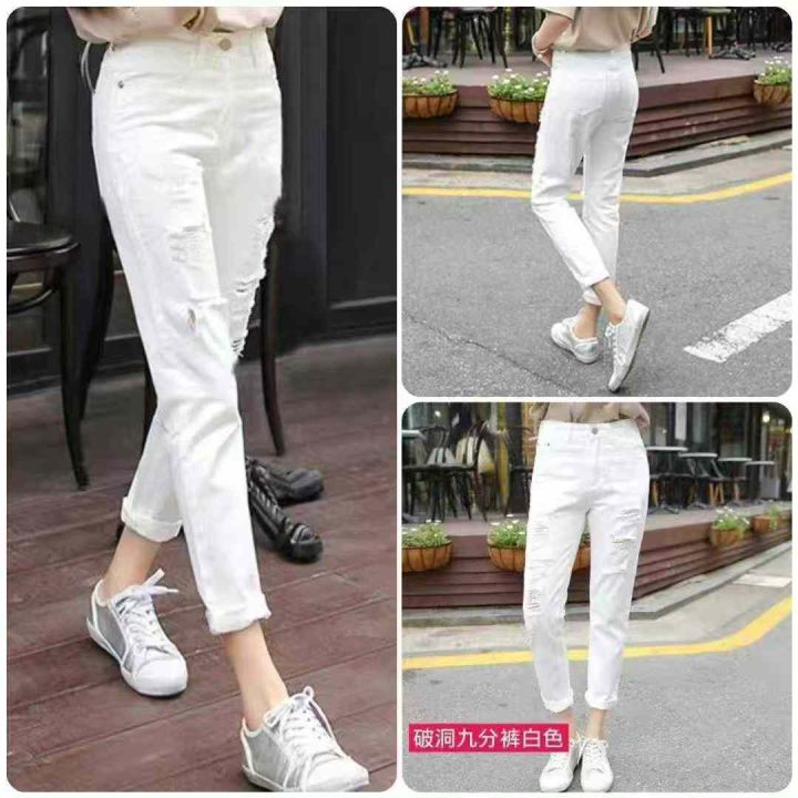 电商仓回收40件韩版女学生宽松破洞牛仔直筒哈伦裤女,码数S-XL。全部独立包装。