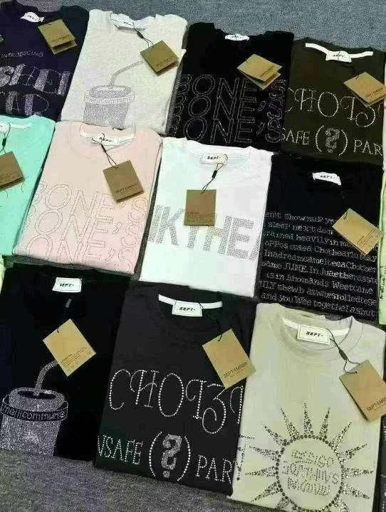 [太阳]布灵布灵(⁎⁍̴̛ᴗ⁍̴̛⁎)亮晶晶高品质奥地利烫钻高重工![色]真正高重工烫钻高克重重磅短袖 T恤!基本统一面料!一个品牌! 300 克以上!质量太好太棒了!大货 3000 件,独家货源!全清 15.5 元!分货 16.5元!多花色多颜色混配!