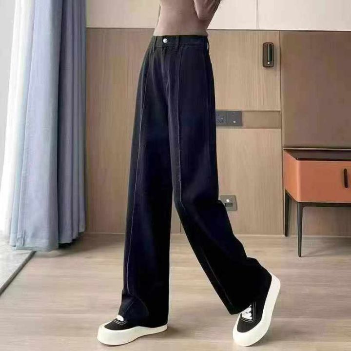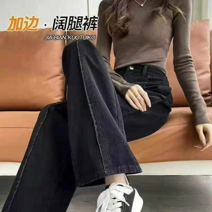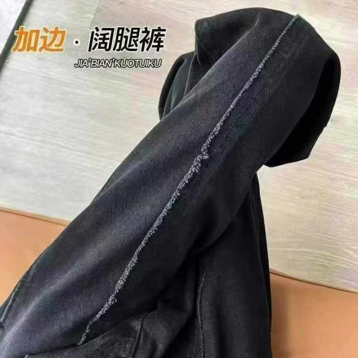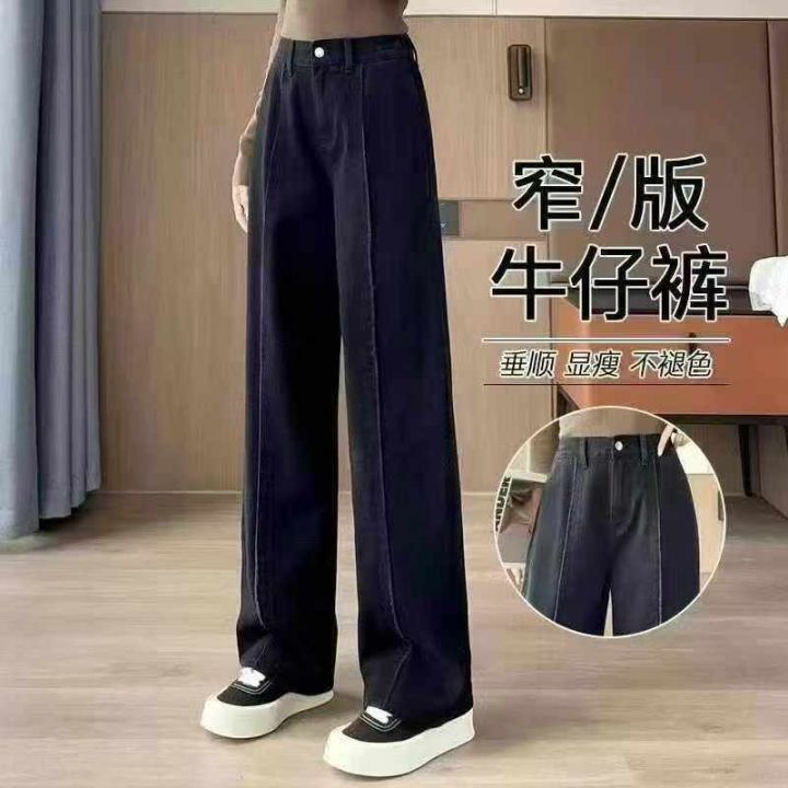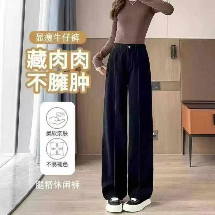 黑色阔腿牛仔裤新款裤子高腰显瘦宽松显高直筒拖地长裤...