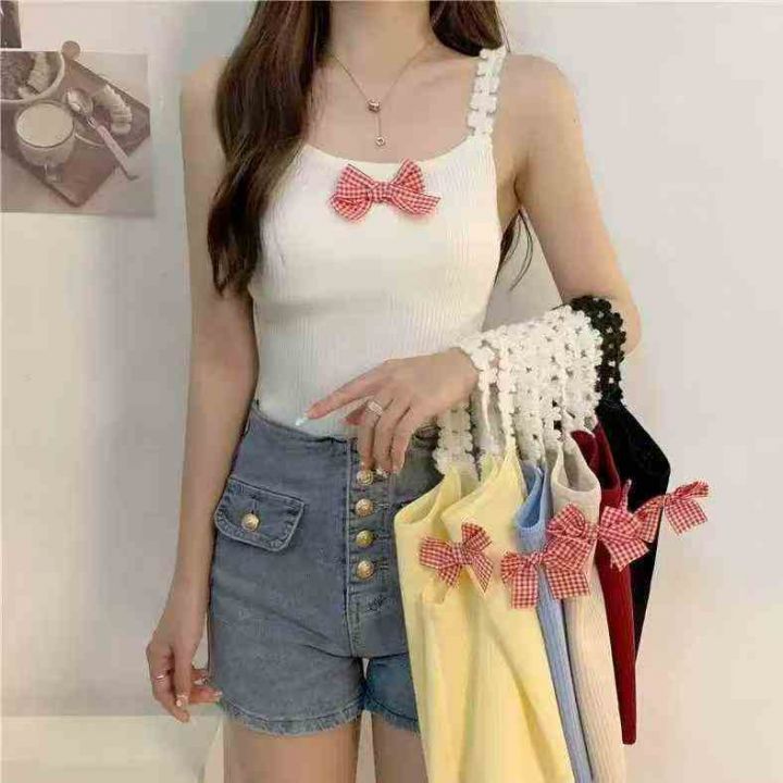 夏季新款港味风格蝴蝶结设计感纯欲辣妹针织吊带独立包装,均码面料柔软舒适...