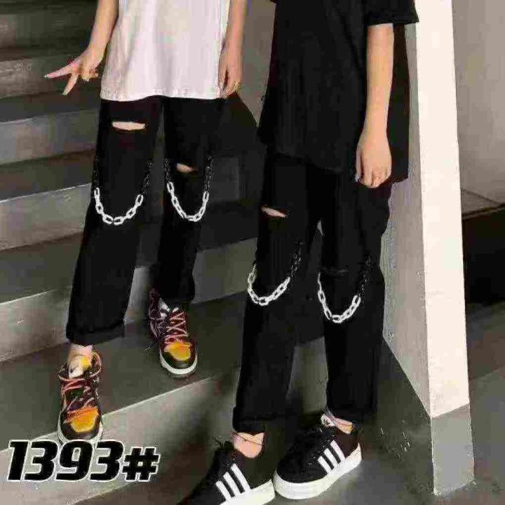 潮牌新款链条牛仔裤休闲裤男女同款宽松精神小伙情侣款