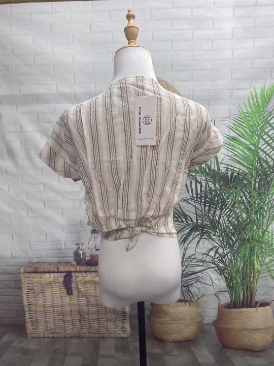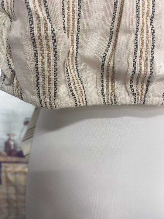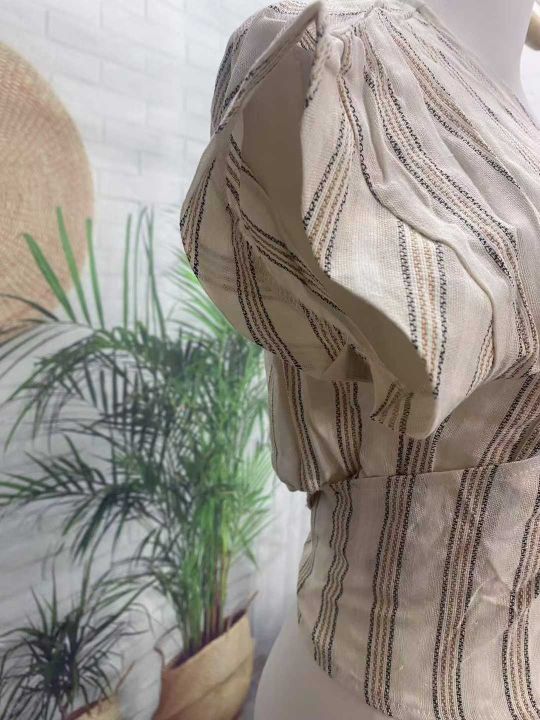 [得意]2.8元全清,设计感条纹亚麻透气宽松显瘦短袖披肩上衣,独立包装,S-XL,108件左右