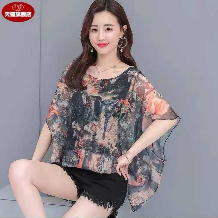 4.5元全清,夏季前短后长雪纺衫女装新款蝙蝠衫短袖宽松衣服遮肚子上衣潮,花型图案多,品质好,独立包装带吊牌,S-XL,1280件左右
