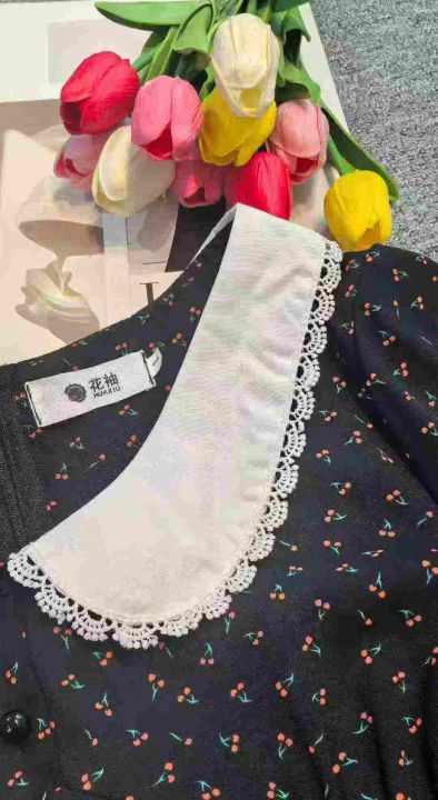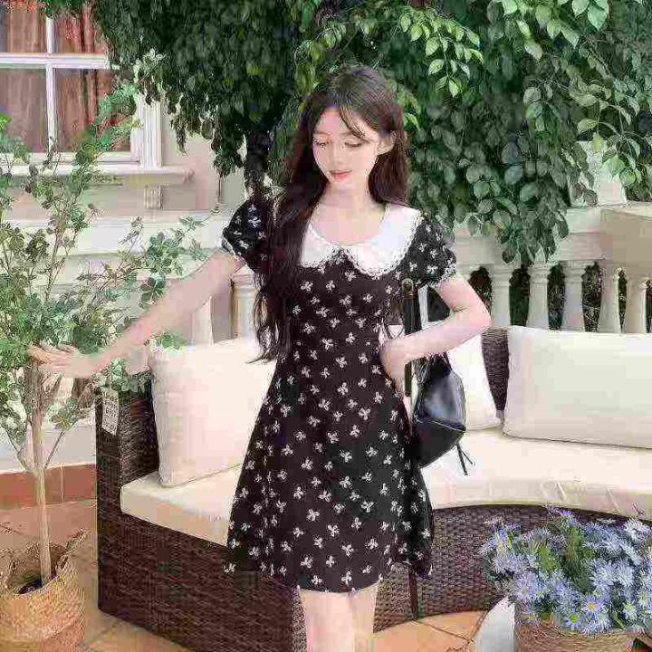 甜美娃娃领减龄显瘦泡泡袖雪纺连衣裙,[爱心]40件左右,码数M-XL(M码为主,M码可穿90-110斤),[庆祝]万佳档口新货,原包装️瑕疵