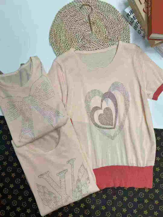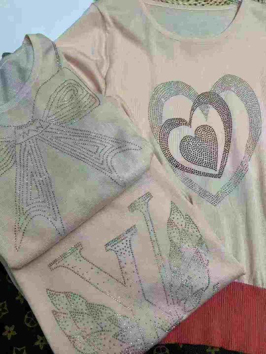 高品质冰丝烫钻重工艺短袖大码针织衫,妈妈装短袖,数量580件左右,面料冰爽丝滑,单款多图案,全部都是烫钻重工艺,码数105-120(s-XL)90-150斤左右可穿,独立包装,分货➕1随机配,每个款已独立分包装好。