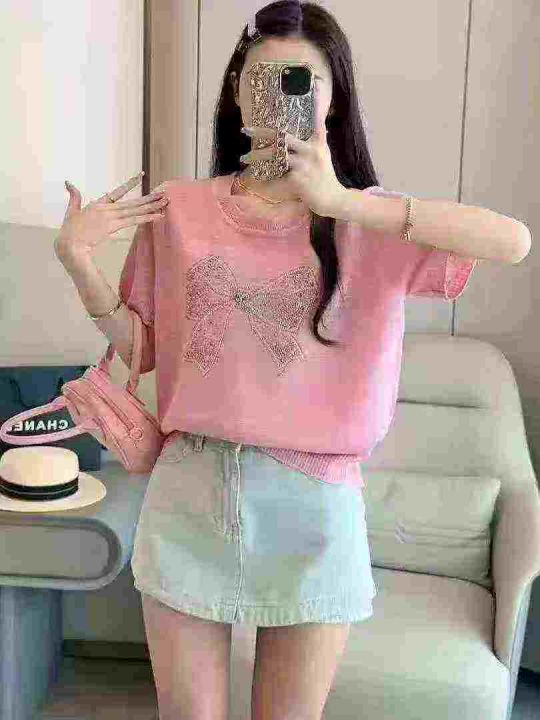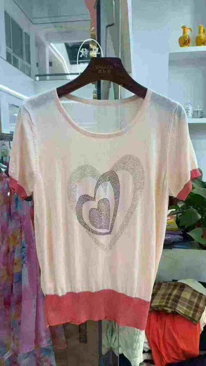 8.8元清高品质冰丝烫钻重工艺短袖大码针织衫,妈妈装...