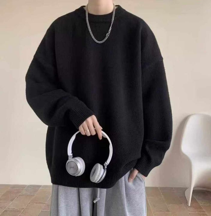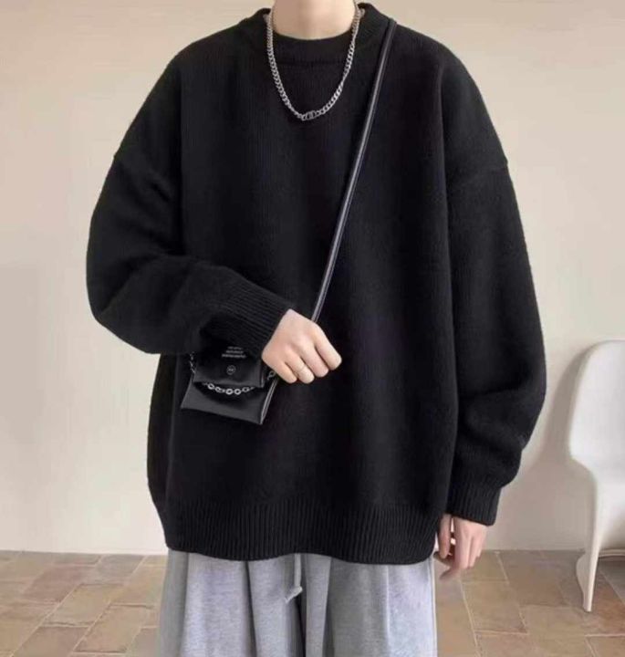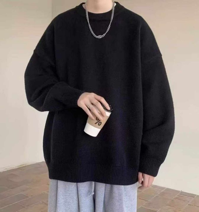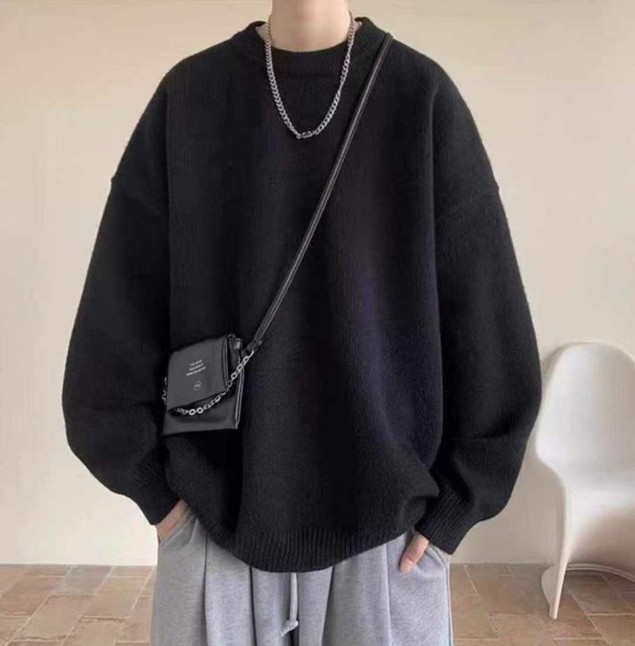 秋冬新款男士宽松慵懒风落肩纯棉套头毛衣,独立包装,...