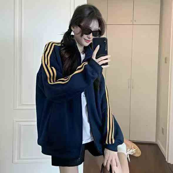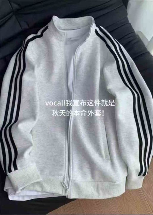 6.8清3478男女同款三条杠开衫卫衣韩版简约休闲百搭立领夹克外套 美式潮 码数M-4XL 分货➕1