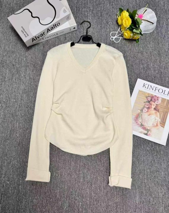 时尚辣妹V领褶皱针织衫,面料柔软舒适,高弹力,品质好,独立包装,均码,120件,清7.9
