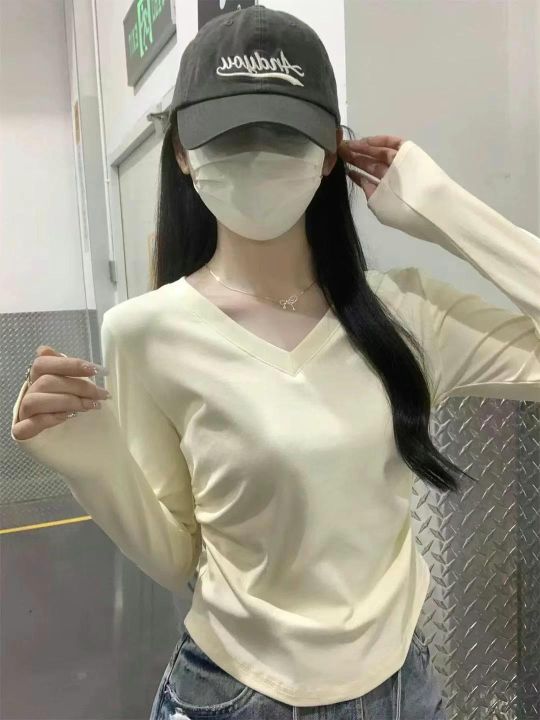 时尚辣妹V领褶皱针织衫,面料柔软舒适,高弹力,品质...