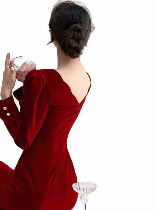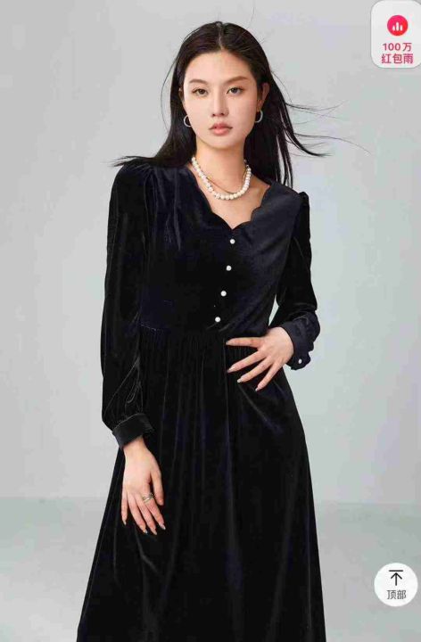 全清8.8法式复古赫本丝绒连衣裙女秋冬显瘦气质女神范...