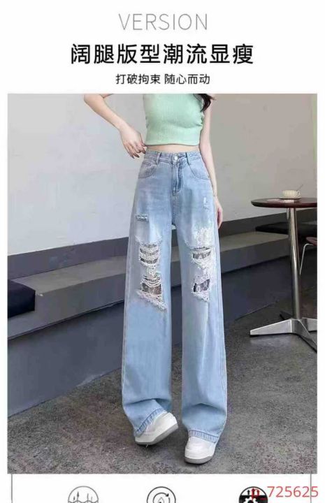 春夏新款洗水棉破洞牛仔直筒阔腿裤,独立包装带吊牌,码数S- 2XL码,140件,全清8.9元超低价秒杀! New Spring Summer Washed Cotton Ripped Denim Straight Wide Leg Pants بنطلون دنيم واسع الساق مستقيم ممزق بقطن مغسول جديد ربيع صيف_@_@