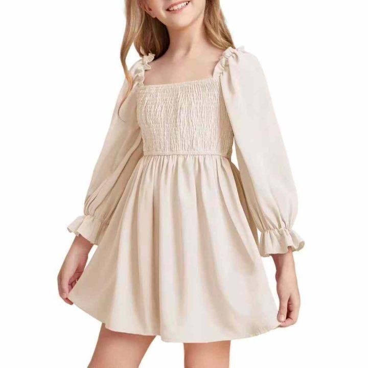新款欧美方领灯笼袖荷叶边大摆连衣裙花边女童短裙,独立包装,码数110~160,数量190左右,全清9.8元