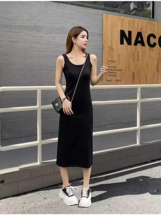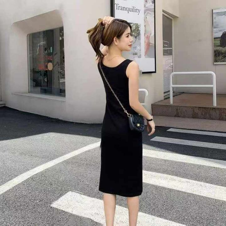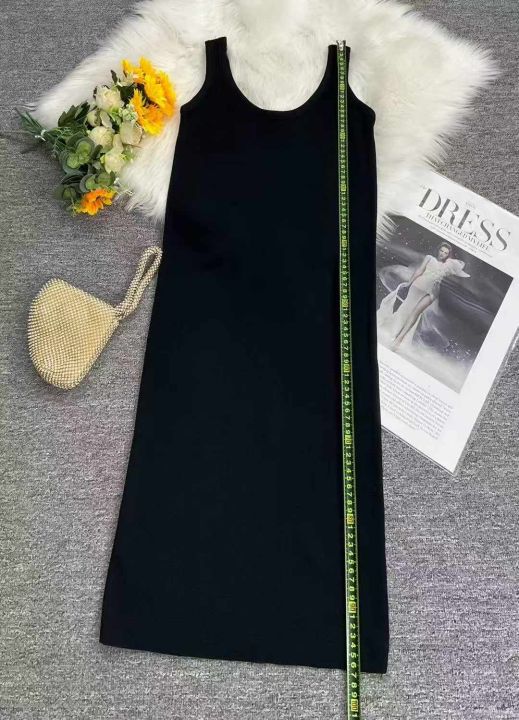 春夏新款网红爆款黑色弹力修身显瘦无袖针织背心连衣裙...