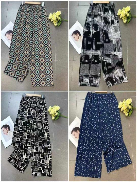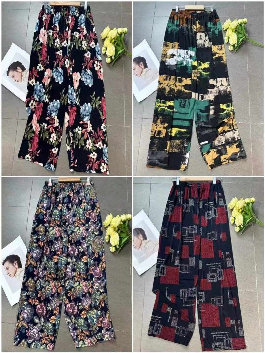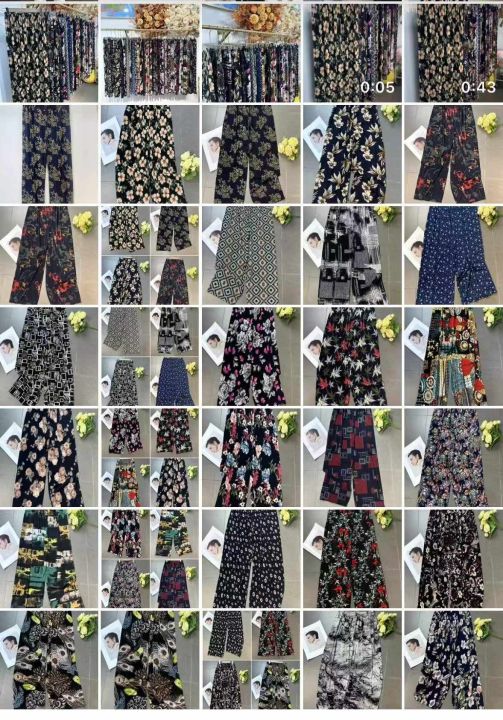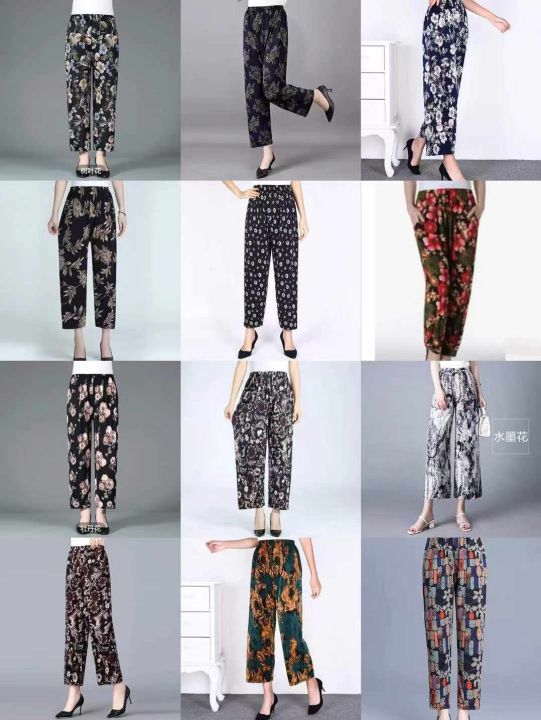 下身长裤[太阳]全清5.8,10000件。 中老年妈妈花裤系列,夏季中老年宽松阔腿垂感冰丝速干凉凉裤,垂感好,有弹力,腰部有弹力松紧,不挑人,面料柔软,花色多,非常适合摆地摊,赶集,做早市/夜市首选产品、这个性价比太给力啦[666],均码、可以穿到135斤左右,具体以实际身材比例为准、配小份100/200件起6.3