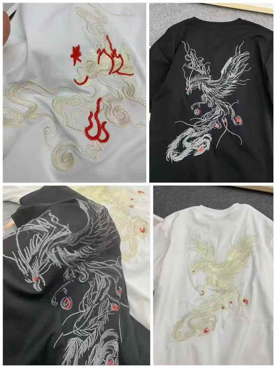 面料舒适透气,后领包边,图案刺绣,背后大图,