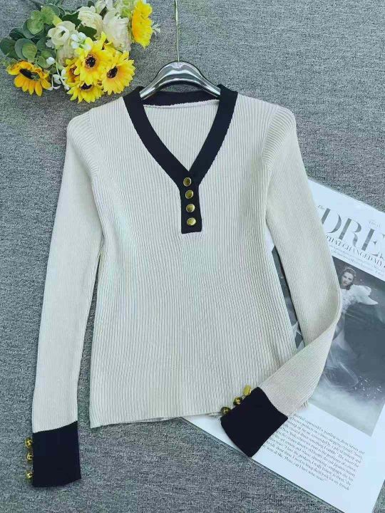 早秋小香风修身显瘦软糯洋气V领长袖针织衫,独立包装...