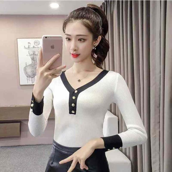 早秋小香风修身显瘦软糯洋气V领长袖针织衫,独立包装,面料软糯舒适弹力大,100件左右,全清6.9元超低价秒杀!