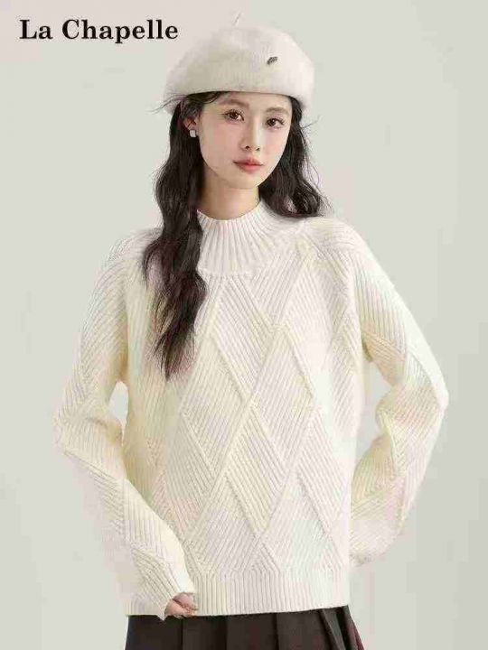 全清11.9,拉夏贝尔白色半高领毛衣女2025春秋新款加厚中领针织打底...