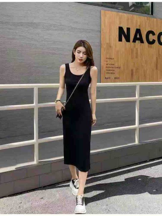 春夏新款网红爆款黑色弹力修身显瘦无袖针织背心连衣裙...