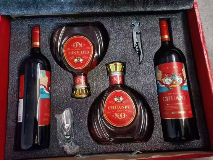 红酒套盒一千箱左右入库,箱规四瓶,两瓶红酒两瓶XO,...