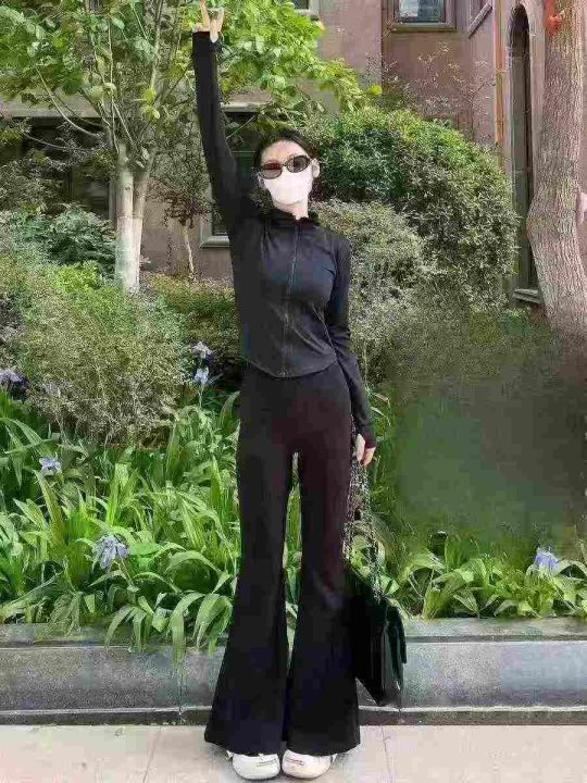 49套瑜伽运动防晒跑步套装,高弹力紧身收腰显瘦健身外套+夏季薄款高腰垂感微喇裤,码数s.M.L,独立包装