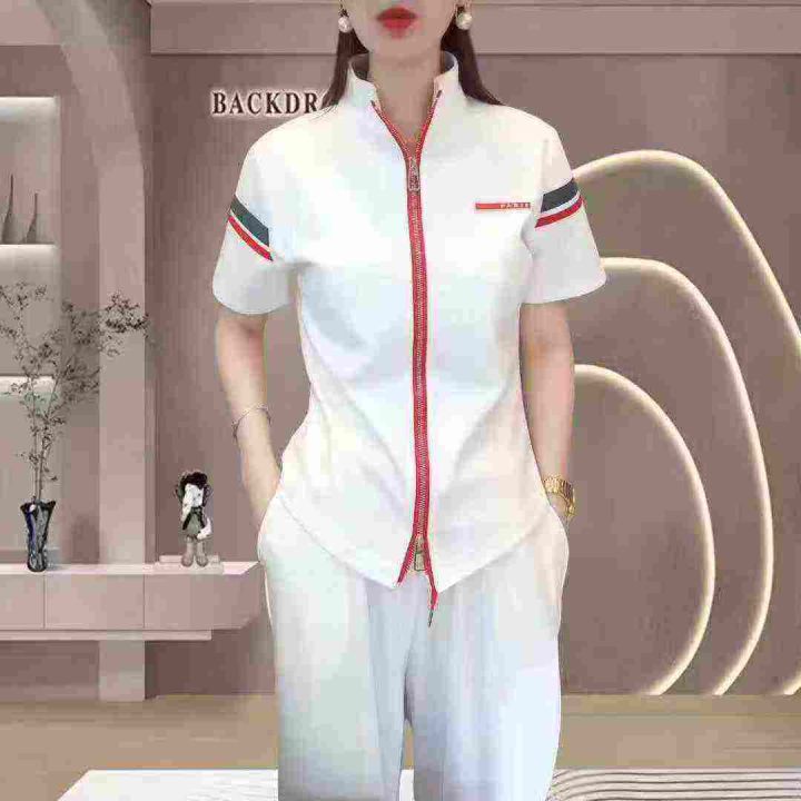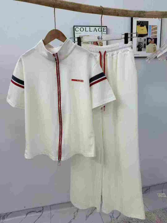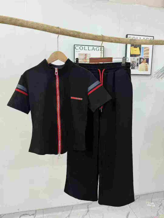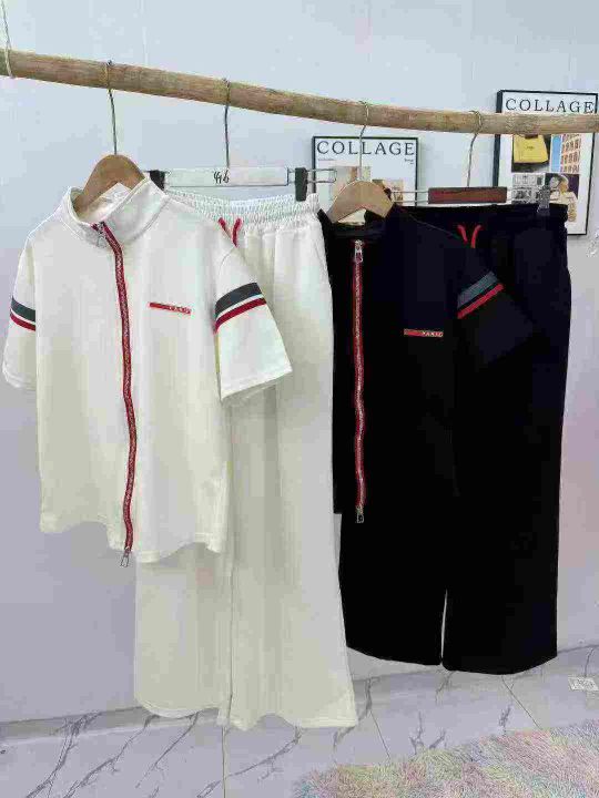 新款短袖阔腿裤显瘦两件套女2025夏季时尚拉链拼接撞色休闲套装女,数量283套,码数M-2XL,独立包装,货品干净漂亮,