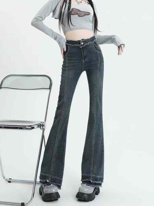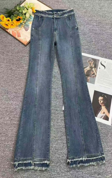 春秋新款高品质高弹力洗水棉网红微喇叭牛仔长裤,独立...