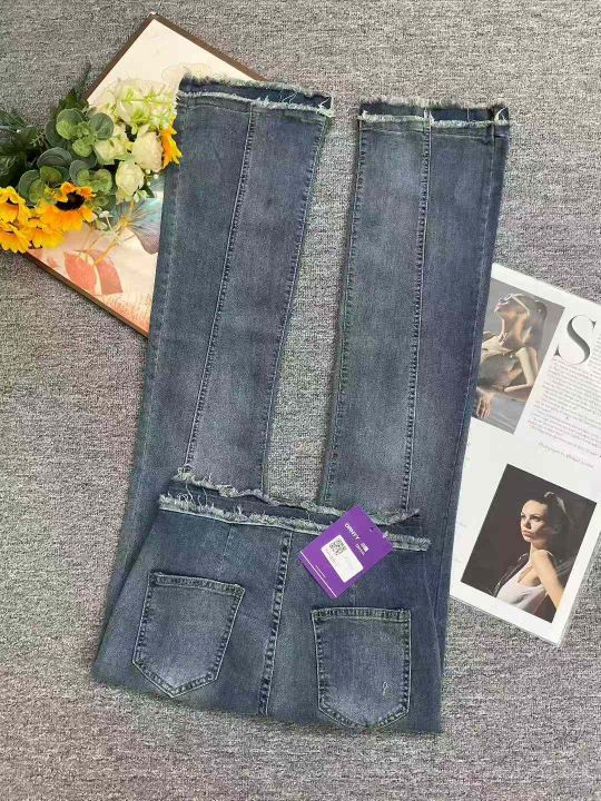 高弹力网红高腰喇叭开叉牛仔裤女,单款四色,独立包装带吊牌,码数25-32,...