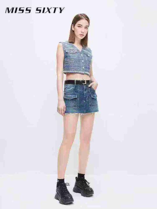 夏季新品高品质品牌女装工装洗水棉多袋牛仔短裙,独立...
