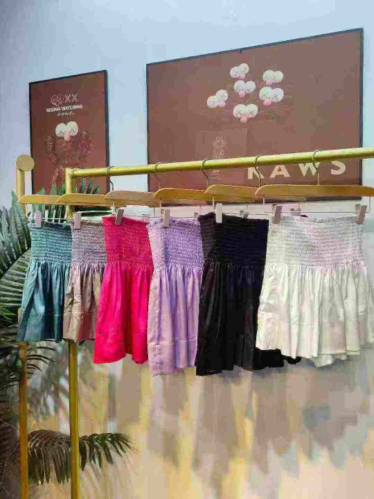 203件夏季女装时尚高腰纯色缎面裤裙 褶皱打揽腰 单款多色 宽松大版,码数XS S/M L/XL 独立包装带吊牌。