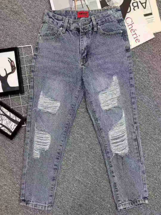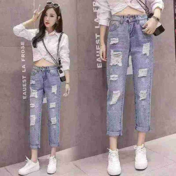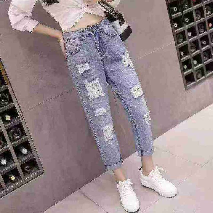 ☕️高腰破洞宽松哈伦裤女夏季显瘦老爹乞丐裤 717条全...