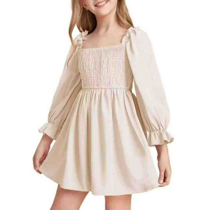 新款欧美方领灯笼袖荷叶边大摆连衣裙花边女童短裙,独立包装,码数110~160,数量190左右,全清9.8元