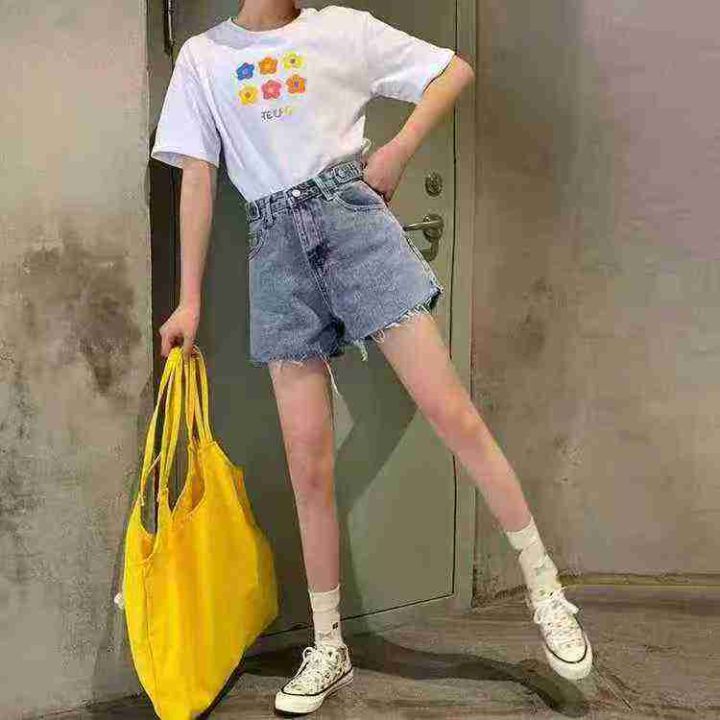 韩版高腰宽松女士牛仔短裤,单款2个颜色,独立包装,...