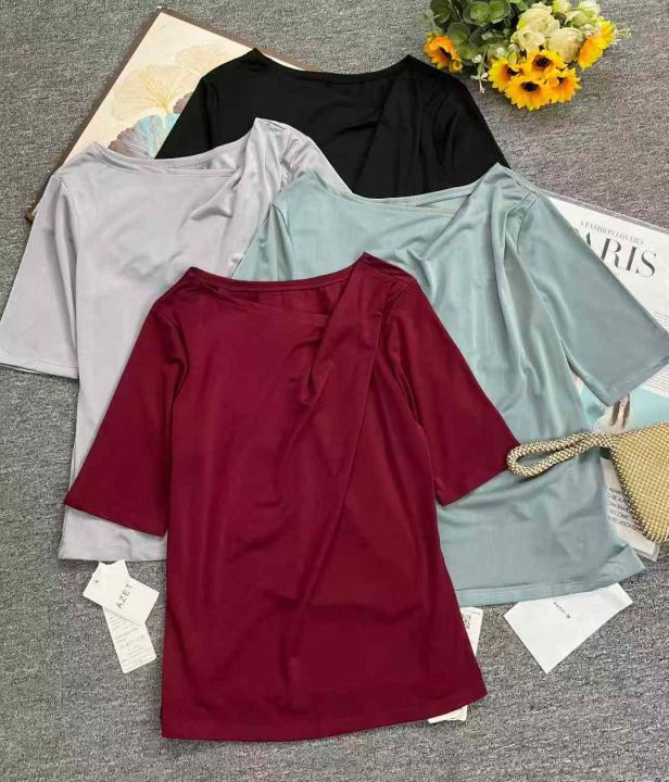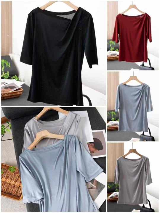 夏季新款轻奢法式三醋酸垂感丝滑缎面皱褶不规则斜肩T桖,独立包装带吊牌,码数S--XL码,430件,全清4.9元超低价秒杀!分货加一!