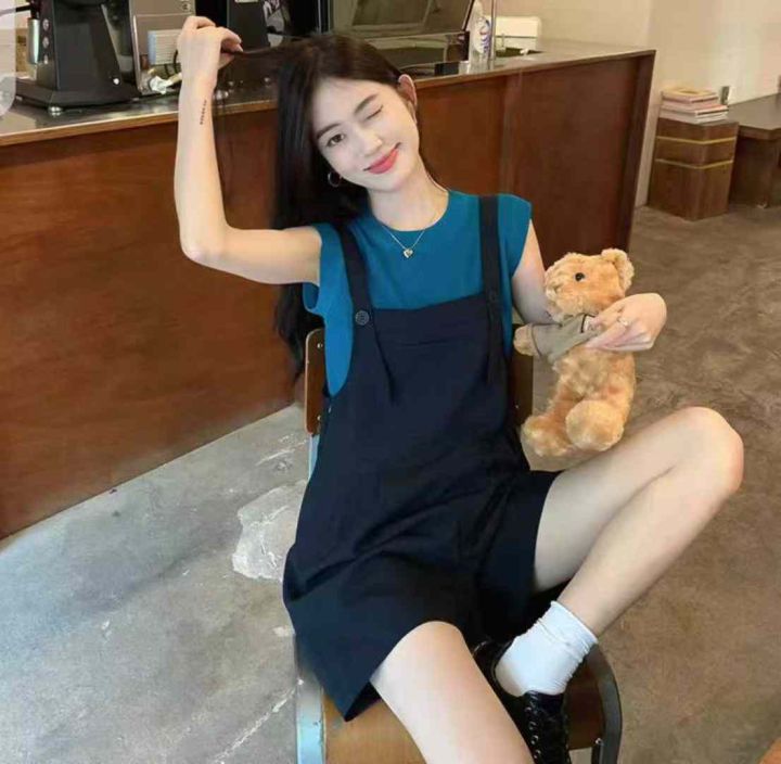 捡漏款,夏季新款学院风减龄网红休闲短袖+背带短裤两...