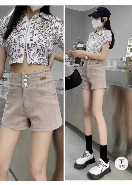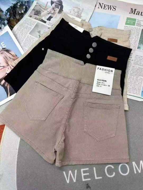 高腰设计款修身弹力款牛仔短裤,整款3个颜色,独立包...